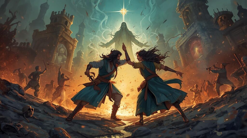 अरिवान, जो आग और प्रकाश का मास्टर था, लंबे समय से जंगलों में घूमता रहा, बीमारों का गुप्त रूप से इलाज करता रहा। मीरा, जिसकी शक्ति पानी और धरती से जुड़ी थी, गांवों में चुपचाप घूमती थी, कुएं को शुद्ध करती थी और बंजर खेतों को जीवन देती थी। एक रात, एक खंडहर मंदिर में उनकी राहें एक हुईं, जहाँ दोनों एक ही शापित वेदी को शुद्ध करने आए थे। उनकी शक्तियाँ एक-दूसरे के साथ गूंज उठीं – The 2 Hidden Flames of Madhya Pradesh Love Story, और उसी क्षण, उन्होंने एक दूसरे को पहचाना – अपरिचित के रूप में नहीं, बल्कि जैसे वे आत्मीय जानें हों।