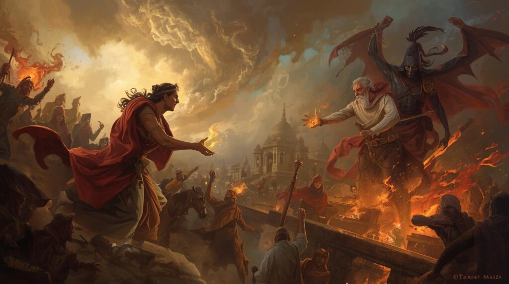हालांकि, काले जादूगर को एक प्रतिरोध का एहसास होने लगा। उसकी श्रापों ने मोड़ लेना शुरू किया, वह उस रोशनी के स्रोत को खोजने लगा जो उसकी खिलाफ थी। नर्मदा नदी के पास के जंगलों में, उसने एक महामारी का तूफान छोड़ा, जिससे वह अपने दुश्मनों को बाहर निकाल सके। अरिवान और मीरा एक साथ खड़े थे, उनके हाथ एक साथ जुड़े हुए, उनकी शक्तियाँ एक चमक में मेल खा रही थीं जो रात के आसमान को रोशन कर रही थी। आग और पानी, रोशनी और पृथ्वी—विपरीत शक्तियाँ जो सामंजस्य में बुनती गई—अंधकार के खिलाफ उठ खड़ी हुई The Hidden Flames.
